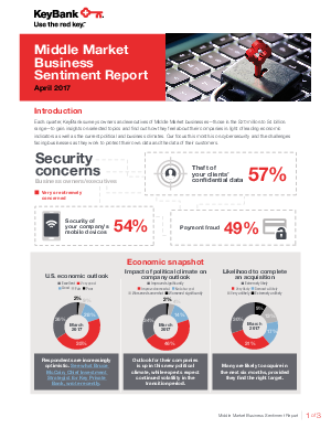 When it comes to the middle market, Key has a dedication like no other bank. Our commitment and focus allow us to deliver relevant, actionable, and tailored solutions for middle market companies. As part of this commitment, KeyBank conducts quarterly surveys with middle market executives. We ask them various questions about business and the world around them to uncover industry views, including how they feel about the state of the economy, security, future growth plans and more.
