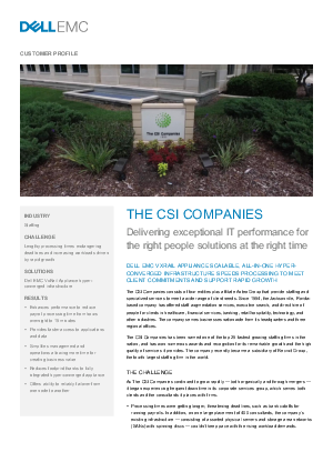The CSI Companies consists of four entities plus affiliate Anteo Group that provide staffing and specialized services to meet a wide range of client needs. Since 1994, the Jacksonville, Floridabased company has offered staff augmentation services, executive search, and direct hire of people for clients in healthcare, financial services, banking, retail/hospitality, technology, and other industries. The company serves businesses nationwide from its headquarters and three regional offices.