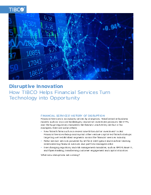 FINANCIAL SERVICES’ HISTORY OF DISRUPTION Financial Services is an industry driven by disruption. Transformative business models such as low-cost brokerages, innovative investment products like ETFs, and the huge regulatory mandates like Gramm-Leach-Bliley are but a few examples. Here are some others: