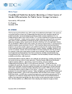 With the maturing of the all-flash array (AFA) market, the established market leaders in this space are turning their attention to other ways to differentiate themselves from their competition besides just product functionality. Consciously designing and driving a better customer experience (CX) is a strategy being pursued by many of these vendors.This white paper defines cloud-based predictive analytics and discusses evolving storage requirements that are driving their use and takes a look at how these platforms are being used to drive incremental value for public sector organizations in the areas of performance, availability, management, recovery, and information technology (IT) infrastructure planning.